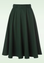 ”Swing your way into winter” met deze 50s Di Di Swing Skirt in Forest Green! Dit fifties pareltje draag je hoog in de taille, vanwaar zij uitloopt in een klassieke, elegante swing rok. De ‘faux’ knoopdetails in de zij vormen niet alleen een speels detail, maar benadrukken je taille ook nog eens extra. Uitgevoerd in een stevige maar soepel vallende, donkergroene stof (stretcht amper) die prachtig met je mee beweegt. De winterperiode kan zo mooi zijn, zeker met een rok als Di Di in je kast 😉 * Full swing rok * ‘Faux’ knoopdetails * Zijwaartse steekzakken * Rits- en haaksluiting achterzijde * Combineer met een van onze petticoats voor een extra feestelijk effect * Valt bij een lengte van 1,70 m over de knie