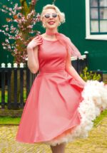 “It’s almost impossible to watch a sunset and not dream!” Adriana is exclusief verkrijgbaar bij Topvintage en met liefde door onze eigen in-house designers ontworpen. Ze is uitgevoerd in een stevige maar soepel vallende, luchtige katoenmix met een lichte stretch in een betoverende, koraalroze kleur. * Swing model: kan gecombineerd worden met een petticoat * It has pockets! * Blinde rits achterzijde * Exclusief bij Topvintage verkrijgbaar * Gorgeous Julia Fiore (Fiorevanil) is 1,70 m; haar accessoires zijn haar eigen vintage treasures