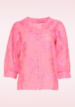“Feeling palm-tastic today!” Deze roze blouse is een frisse, zomerse must-have! Ze heeft een losse, comfortabele fit, 3/4 wijde mouwen en een functionele knopenreeks aan de voorzijde. De geborduurde palmbomen geven haar een speelse tropical twist en doordat ze is uitgevoerd in 100% katoen, draagt ze heerlijk luchtig en ademend. * Loose-fit model * Knoopsluiting * 3/4, wijde pofmouwen * Lang genoeg om op een normale heupbroek te dragen