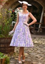 “Whispered in white, blooming in violet.” Deze prachtige Violet Whisper heeft een vrolijke bloemenprint in paarstinten en is gemaakt van een stevige maar soepel vallende witte katoenmix met een lichte stretch voor optimaal draagcomfort. Voeg haar toe aan je garderobe en je bent helemaal klaar om te stralen deze zomer! * Full swing * Zijwaartse steekzakken * Blinde rits achterzijde * Combineer met een van onze petticoats voor een extra feestelijk effect * Valt bij een lengte van 1,70 m over de knie