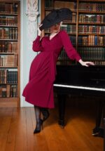 ”A wrap of red… she tied the dress and the room fell silent!” Deze flowy wikkeljurk is ontworpen door onze eigen in-house ontwerpers en is een ode aan tijdloze elegantie, geïnspireerd door de iconische stijl van Ava Gardner en haar ongedwongen charme in de film ‘Barefoot Contessa’ uit 1954. Ze heeft een V-hals met overslag, lange, licht poffende mouwen met manchetten en een vaste strikband in de taille vanwaar ze uitloopt in een flowy overslag rok. Uitgevoerd in een gladde, soepele en stretchy bordeauxrode stof. “Soft in fabric. Sharp in effect.” * Overslag jurk * Gevoerde top * Lange, licht poffende mouwen met manchetten * Vaste strikbanden voor een extra ‘snatched’ taille * Rok met overslag * Blinde rits in de zijnaad * Gorgeous Julia Fiore (Fiorevanil) is 1,70 m; haar accessoires zijn haar eigen vintage treasures * Let op; de kleur van het product op de video kan afwijken van de daadwerkelijke kleur van het product