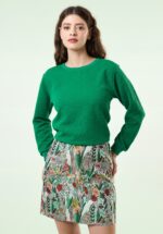 ”Welcome to my city escape!” Maak een (retro) statement dit seizoen met dit speelse A-lijn rokje! Ze is uitgevoerd in een iets dikkere en stevige, glanzende jacquard stof (stretcht niet!) voorzien van een kleurrijke tropische bloemen- en planten print. Om je look helemaal compleet te maken is ze te combineren met de bijpassende Salut Jungle Jacquard jack! * A-lijn model * Goudkleurige ritssluiting achterzijde * Volledig gevoerd * Valt bij een lengte van 1,70 m boven de knie * Combineer haar met de bijpassende Salut Jungle Jacquard jack