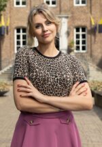 “A classic knit with spots of attitude.” Deze top heeft een ronde halslijn, korte mouwtjes en is uitgevoerd in een heerlijke soepele en stretchy, viscose met een sassy leopard print in bruin, beige en zwart die heerlijk comfortabel draagt. * Ronde kraag * Korte mouwen * Stretchy ribboord * Lang genoeg om op een normale heupbroek te dragen * Let op; de kleur van het product op de video kan afwijken van de daadwerkelijke kleur van het product