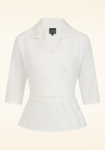 ‘Dress how you want to be addressed! ‘Boss Lady’ will do just fine!’ 😉 Jij hebt de touwtjes in handen als je deze veelzijdige Dianne Blouse in Crispy White draagt! Ook dit seizoen voorzien onze in-house designers ons weer van draagbare en klassieke items met een hypervrouwelijk silhouet voor alle ”Power Women”. Deze licht getailleerde classy blouse heeft het comfort van een top en is afgewerkt met een puntig revers kraagje en 3/4 mouwtjes met puntige omslagjes. Uitgevoerd in een stevige maar toch soepele ivoorwitte stof met een hele lichte stretch die heerlijk draagt! * Blouse * Licht getailleerd * Puntig revers kraagje * Gevoerd bij de buste (voorkomt doorschijnen) * 3/4 mouwtjes met puntige omslagjes * Blinde rits achterzijde * Lang genoeg om op een normale heupbroek te dragen * Femme fatale Eden Berlin is 1,68 m: haar pumps en accessoires zijn haar eigen treasures