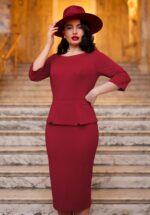 “Confidence twirls best in red and black.” Dit seizoen hebben onze getalenteerde in-house designers zich laten inspireren door draagbare en klassieke silhouetten met een White Collar Edge; items voor de power vrouw die de zakenwereld omver blaast met haar hyper vrouwelijke silhouet. Dianne is uitgevoerd in een stevige maar toch soepele, rood/zwarte stof met een lichte stretch die gracieus met je meebeweegt! ”This swing dress isn’t just fashion—it’s a power move.” * Swing stijl * V-halslijn * Puntig revers kraagje * 3/4 mouwtjes met puntige omslagjes * Gevoerde top * Zijwaartse steekzakjes * Blinde rits aan de achterzijde * Lira Karina is 1,56 m: haar pumps en accessoires zijn haar eigen treasures