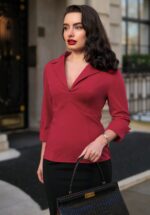 ”Act like a lady, think like a boss!” Ook dit seizoen hebben onze getalenteerde in-house designers zich laten inspireren door draagbare en klassieke silhouetten met een White Collar Edge; items voor de power vrouw die de zakenwereld omver blaast met haar hyper vrouwelijke silhouet. Deze licht getailleerde classy blouse heeft het comfort van een top en is uitgevoerd in een stevige en soepele wijnrode travel stof met een fijne stretch, waardoor ze heerlijk comfortabel draagt! ”Stay classy and comfy!” * Licht getailleerd * Puntig revers kraagje * 3/4 mouwtjes met puntige omslagjes * Blinde rits achterzijde * Lang genoeg om op een normale heupbroek te dragen