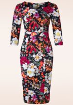 Delilah Flower pencil jurk in marineblauw en multi