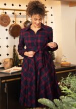 Kim Tartan swing jurk in marineblauw en bordeauxrood