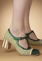 Van deze Amelie Leather T-Strap Pumps in Green worden wij retro lovers helemaal happy de pe… uhm preppy! Met een mini rokje van Mary Quant, een korte pixie cut en bold eyeliner… zo zou Twiggy deze preppy pumps back in the sixties gerockt hebben! Uitgevoerd in een combinatie van donkergroen metallic leder, met een suède gedeelte voorzien van een grafisch printje. Verder zijn ze voorzien van een speels T-strap bandje, opvallende biesjes en een comfy voetbed van leder met foam. Maar de echte eye-catcher is toch wel de lage, stevige blokhak voorzien van streepjes. Weet jij al waarbij jij deze retro cuties gaat dragen? * Echt leder/suède * Rond neusje * Verstelbaar T-strap bandje * Zilverkleurig gespje * Stevige, lage blokhak * Comfortabel lederen voetbed met foam * Anti-slip zool * Deze kleurcombinatie is speciaal ontworpen voor TopVintage