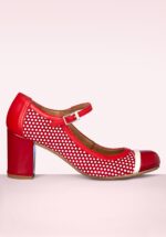 Je kunt niet anders dan vrolijk worden van deze 60s Charol Leather Mary Jane Pumps in Red! Een retro Mary Jane stijl, polkadotjes en een sixties blokhak? Ja, je ziet het goed… deze pumps hebben het allemaal! Uitgevoerd in een combinatie van dieprood leder, lakleder en suède met een contrasterend biesje in crème en een print van crèmekleurige polkadots. De rode blokhak in lak maakt het plaatje helemaal compleet en dankzij het voetbed voorzien van zacht foam, lopen ze ook nog als slofjes. Wat een dotjes he? * Mary Jane stijl * Verstelbaar enkelbandje * Echt leder/suède/lakleder * Rond neusje * Stevige blokhak * Comfortabel lederen voetbed * Anti-slip zool * Deze kleurcombinatie is speciaal ontworpen voor Topvintage