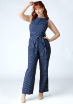 “Stripes, style, and confidence.” Deze jumpsuit is met liefde ontworpen door onze in-house designers en exclusief bij Topvintage verkrijgbaar. Ze heeft een hoge halslijn, een elegante V-rug en een afneembaar striklint in de taille, terwijl de lange wijde pijpen zorgen voor een stijlvolle, vrouwelijke look. Uitgevoerd in een stevige, maar soepel vallende katoenmix in marineblauw met een wit gestreept patroon en een lichte stretch voor extra comfort. * Jumpsuit * Hoge halslijn * V-rug * Zijwaartse steekzakken * Blinde rits achterzijde * Lange wijde pijpen * Exclusief bij Topvintage verkrijgbaar