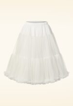 ”Sometimes more is more, because less is a bore!” Penelope is door onze eigen in-house designers ontworpen en exclusief bij Topvintage verkrijgbaar! De 2 lagen tule stof in ecru zorgen voor extra volume, bewegen gracieus met je mee en zijn afgezet met speelse ruches aan de onderzijde. ”We just love the drama of a big, voluminous dress or skirt!” * Geschikt voor al onze swing jurken en rokken * Elastische tailleband * 2 lagen * Stunning Barinovael is 1,67 m: haar pumps en accessoires zijn haar eigen treasures * Let op; verkrijgbaar in 2 maten. Maataanduiding 2 is voor onze Queen size ladies * Exclusief bij Topvintage verkrijgbaar * Let op; de kleur van het product op de video kan afwijken van de daadwerkelijke kleur van het product