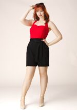 “Shorts season, confidence always.” Sophia is exclusief bij Topvintage verkrijgbaar en heeft een hoge taille die je silhouet mooi definieert. De rits- en haaksluiting aan de voorzijde en het afneembare striklint zorgen voor een elegante, vrouwelijke touch. De wijde pijpjes met vaste omslagjes geven een speelse flair, terwijl de zakken extra gemak bieden. Gemaakt van een soepele gemixte stofmix met lichte stretch in classy zwart. * Hoge taille * Rits en haaksluiting aan de voorzijde * Afneembaar striklint * Voorzien van zakken * Wijde pijpjes met vaste omslagjes * Exclusief bij Topvintage verkrijgbaar