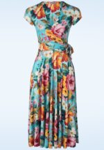 Topvintage exclusive ~ Layla Floral overslag swing jurk in turquoise en multi