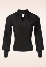 “Drama in the details!” Deze elegante zwarte top heeft lange bisschopsmouwen voor een speelse, volumineuze touch. Het keyhole-detail bij de hals, subtiel gedraaid, voegt een chique en vrouwelijke flair toe. Uitgevoerd in een soepel, stretchy en slinky stofje voorzien van een subtiele glans, dat comfortabel draagt. * Keyhole met gedraaid detail aan de halslijn * Gevoerd * Knoopsluiting aan de achterzijde * Flatterende plooitjes * Lange bisschopsmouwen * Lang genoeg om op een normale heupbroek te dragen * Exclusief bij Topvintage verkrijgbaar