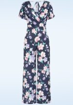 “Elegance in every movement.” Deze flowy jumpsuit heeft een elegante overslagtop met speelse vlindermouwtjes en een flatterende geplooide tailleband. Ze is uitgevoerd in een soepel, stretchy marineblauw slinky stofje met een prachtige bloemenprint in roze- en paarstinten, dat heerlijk draagt en garant staat voor veel kreukvrij draagplezier. * Jumpsuit * Gevoerde overslagtop * Vaste strikbandjes * Korte vlinder mouwtjes * Flatterende, geplooide tailleband * Lange, wijde pijpen * Geen rits of knopen; aantrekken en ready to go! * Exclusief bij Topvintage verkrijgbaar