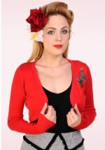 Zorg dat je retro outfit goed tot zijn recht komt met deze Bolero in rood! Ook in de zomer kan het in de avond nog wat fris aanvoelen maar je hebt je mooiste zomerjurk aan en een jasje doet daar afbreuk aan, wat nu? Nou, deze stijlvolle bolero aanschaffen dus! Uitgevoerd in een warme, stretchy, fijngebreide stof en afgerond aan de voorzijde zodat hij mooi langs je buste valt. Afgewerkt met een bredere ribboord langs de mouwtjes voor een aansluitende pasvorm die mooi in vorm blijft. Laat je jas maar aan de kapstok want deze bolero is warm en elegant! * Afgeronde boord * Lange mouwen * Elastisch ribboord