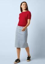 “Stripe it lucky!” Deze té leuke Prisca Corner Stripe rok is een echte must-have dit seizoen! Ze is aansluitend, wordt hoog in de taille gedragen en is uitgevoerd in een stevige maar soepele, subtiel gestreepte organische denim katoenmix met een fijne stretch, waardoor ze verrassend comfortabel draagt. Voor dit schatje maak je toch wel een plekje vrij in je garderobe, toch? 😉 * Aansluitend model * It has pockets! * Voorzien van riemlusjes * Knoop en ritssluiting voorzijde * Split achterzijde * Valt bij een lengte van 1,70 m over de knie