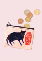 Wees de baas over je eigen geld! Deze kleine portemonnee is gemaakt van (95%) gerecycled materiaal met een gerimpelde look in lichtroze, afgewerkt met een navyblauwe rits en een print van een kat met de tekst: ”I’m not bossy, i’m the boss” * Klein portemonneetje * Ritssluiting * Ruimte voor voor wat kleingeld of enkele pasjes * Gerecycled materiaal (95%) * 1% van de opbrengst wordt gedoneerd aan milieu organisaties over de hele wereld