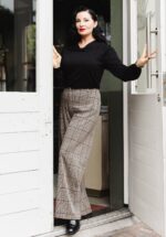 “If autumn had legs, they’d be wearing these flares.” Alba is uitgevoerd in een stevige en soepele, stretchy stofmix met een geruit printje in bruin, donkeroranje en bordeauxrood. * Hoge, elastische taille * It has pockets! * Rits- en knoopsluiting voorzijde * Lange wijde pijp met persvouw