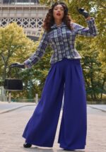 “A tribute to timeless femininity; where soft tailoring meets the romance of Parisian winters.” Deze wijde pantalon uit de nieuwe collectie is geïnspireerd op de extraordinaire Marie-Louise Carven; Een baanbrekende Franse couturière uit de jaren 40 en 50! Uitgevoerd in een stevige maar soepele, koningsblauwe stofmix met een vleugje viscose, die heerlijk comfortabel draagt! * Hoog taille model * Knoop en ritssluiting zijkant * Zijwaartse steekzakken * Klepzakjes achterzijde * Rechte, wijde pijpen met plooien