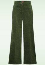 Maak een statement, waar je ook gaat, met deze veelzijdige pantalon, afkomstig uit de nieuwe collectie van Miss Candyfloss: ”Vintage Glam Icons”. De collectie is geïnspireerd op de glamoureuze eerste super modellen! Haidee Juniper is uitgevoerd in een stevige maar soepele olijfgroene stofmix met een vleugje viscose en een fijne stretch, voor een comfortabel draagcomfort. * Hoog taille model * Zijwaartse steekzakken * Paspelzakjes achterzijde * Knoopsluiting zijkant * Verborgen ritssluiting * Rechte, wijde pijp