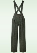Deze 40s Her Favourite Trousers in Black wordt dit najaar ook jouw favoriet! Op het eerste oog lijkt ze een klassieke pantalon met knoopsluiting en steekzakken, maar het leuke aan deze pantalon is dat ze geleverd wordt met afneembare ‘bretels’ waardoor ze een compleet andere look krijgt en je eindeloos kunt variëren. Ze maakt met haar vrouwelijke hoge taille, wijdere pijp, persvouw en chique omslagjes een dikke knipoog naar de jaren 40. Uitgevoerd in een stevige maar soepel vallende, zwarte stof (stretcht amper) die heerlijk draagt. Terecht een favorietje… toch? 😉 * Hoge taille * Knoop- en ritssluiting voorzijde * Wijde pijpen met omslag * Zijwaartse steekzakken * Afneembare en verstelbare ‘bretels’ * ‘Faux’ paspelzakjes aan de achterzijde
