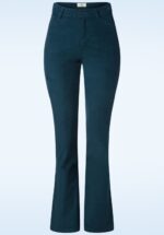 ”If you like it, wear it!” Vergeet het stoffige imago van ribfluweel… deze topper bewijst het tegendeel! Ze is uitgevoerd in een stevige katoenmix van ribfluweel in donkerblauw met een lichte stretch, die heerlijk draagt. * High waist voor een super vrouwelijk silhouet * It has pockets! * Rits- en knoopsluiting voorzijde * Flared pijp