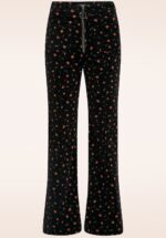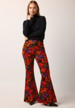 “Peace, love, and pants that pop.” Vergeet het stoffige imago van ribfluweel… deze flared broek bewijst het tegendeel! Uitgevoerd in een stevige katoenmix van ribfluweel met een hele lichte stretch en een kleurrijke retro bloemenprint. * Hoge taille * Riemlusjes * Rits met knoopsluiting voorzijde * Voorzien van zakken! * Wijd uitlopende pijpen