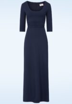 ”The kind of blue that leaves you breathless!” Deze maxi beauty heeft een diepe, ronde halslijn, 3/4 mouwen en loopt vanaf de taille uit in een maxi rok. Uitgevoerd in een soepele en stretchy, navyblauwe crêpe achtige stof die comfy is om te dragen. * Maxi jurk * Gevoerde top * Diepe, ronde hals * Geplooide taille * 3/4 mouwen * Blinde rits achterzijde * Reikt bij een lengte van 1,70 m tot aan de enkel