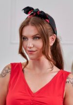 “Cherry sweet with bows on repeat.” Deze bandana maakt je retro look compleet en is ideaal als je een ‘bad hair day’ hebt 😉 Uitgevoerd in in een zwarte katoenmix met een print van kersjes, strikjes en witte dots. * Bandana * Rechthoekig * Katoenmix