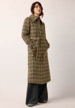 “Structured herringbone, check-print charm… trenchcoat style redefined.” Deze lange jas in trenchcoat stijl is uitgevoerd in een zware kwaliteit, beige stofmix met wol (stretcht niet!), voorzien van een visgraatmotief en ruitjes oranje en bruintinten. Bovendien is ze volledig gevoerd met een satijnachtig stofje voor extra draagcomfort. * Trenchcoat stijl * Puntige reverskraag * Gevoerd * It has pockets! * Afneembare strikband voor een extra ‘snatched’ taille * Dubbele knopenreeks * Split achterzijde * Valt bij een lengte van 1,70 m over de knie * Melissa is 1,78 m