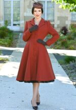 ”Step back in time, wrapped in style!” Met deze swing jas maak je gegarandeerd een statement, waar je ook gaat. Ze heeft een elegant en vrouwelijk swingmodel met een klassieke reverskraag en grote stoffen knopen. Uitgevoerd in een stevige maar soepele stofmix met een vleugje viscose (zonder stretch) in een warme roestbruine kleur, die je wintergarderobe meteen een chique, retro boost geeft. Stijlvol, speels en onweerstaanbaar! * Swing stijl * Revers kraag * Knopenrij * Volledig gevoerd * Voorzien van zakken! * Valt over de knie bij een lengte van 1,70 m