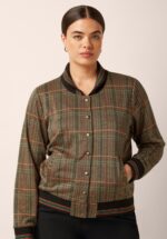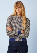 “Checks, charm, and a clean line… that’s the vibe.” Dit korte jack is voorzien van drukknopen en elastische boorden voor die kenmerkende look. Uitgevoerd in een jersey-achtig stofje met een lichte stretch, voorzien van een visgraat en ruitjes patroon. * Ronde halslijn met omslag kraagje * Lange mouwen * Steekzakjes * Drukknoopjes * Stretchy ribboorden