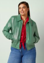 ”It’s time to shine!” Isa is uitgevoerd in een groene imitatie lakleren stof en is gevoerd met een zachte satijnachtige stof voorzien van een polkadot printje. * Puntig kraagje * Steekzakjes * Drukknopen * Stretchy ribboord * Lang genoeg om op een normale heupbroek te dragen