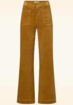 Het broekpak, de broekrok of de playsuit is helemaal jaren 70. Vintage broeken hebben vaak driekwart pijpen of uitlopende pijpen, maar er zijn ook strakke vintage jeans met omgeslagen pijpen uit 1975 te koop. De dames broeken uit de jaren 50 hebben een meer militaire stijl met hoge tailleband en dubbele knopenrijen. De kleuren zijn vaak, hoe kan het ook anders een afgeleide van marineblauw of legergroen. Petrol is ook een kleur die je vaak tegen zult komen bij de retro broeken.