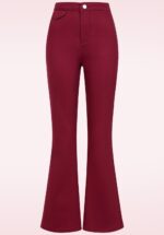“70s groove, modern move!” Deze Legs Eleven broek is zó comfy, je wilt haar iedere dag wel dragen! Geen wonder dat de flared broeken een grote trend waren in de seventies en nu een fantastische comeback hebben gemaakt! De wijd uitlopende pijpen zijn niet alleen speels maar ook nog eens super flatterend. Uitgevoerd in een stevige doch stretchy bordeauxrode katoenmix voor een heerlijk draagcomfort. How I like my trousers? Comfy, fabulous and… flared! * Klepzakje voorzijde * Opgenaaide zakken achterzijde * Rits- en knoopsluiting voorzijde * Wijd uitlopende pijpen