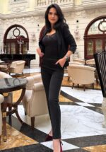 ”Feel the comfort, flaunt the style!” Ook dit seizoen voorzien onze in-house designers ons weer van draagbare en klassieke items met een hypervrouwelijk silhouet voor alle ”Power Women”. Lena Lynn is uitgevoerd in een stevige, maar soepele high quality zwarte stof, die niet kreukt en voorzien is van een lichte stretch, waardoor ze ongelofelijk comfortabel draagt! * Hoog taille model * Voorzien van zakken! * Decoratieve paspelzakken * Aansluitende 7/8 pijpen * Blinde rits achterzijde * Gorgeous model Sylvana van Schaik is 1,65 m: haar pumps en accessoires zijn haar eigen treasures * De matching blazer is apart verkrijgbaar in onze shop!