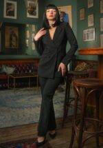 ”I am at heart, a gentleman!” Marlene Dietrich droeg ‘mannelijke’ pakken om een revolutionaire, androgyne look te creëren waardoor het dragen van een broek acceptabel werd voor vrouwen in de jaren 30, thanks Marlene! 😉 Daarom hebben onze eigen in-house ontwerpers zich dit seizoen ook laten inspireren door deze powervrouw! De stevige, high quality stof in zwart heeft een hele lichte stretch, is een genot om te dragen, tekent niet af en houdt je perfect in. En onthoudt diva: JIJ hebt de broek aan… letterlijk! 😉 * Hoog taille model * Rechte pijpen * Blinde rits achterzijde * Stunning Stella Rose Cherry is 1,71 m: haar accessoires en pumps zijn haar eigen vintage treasures * De matching Marlene blazer is apart verkrijgbaar in onze shop!