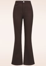 “70s groove, modern move!” Deze Legs Eleven broek is zó comfy, je wilt haar iedere dag wel dragen! Geen wonder dat de flared broeken een grote trend waren in de seventies en nu een fantastische comeback hebben gemaakt! De wijd uitlopende pijpen zijn niet alleen speels maar ook nog eens super flatterend. Uitgevoerd in een stevige doch stretchy donkerbruine katoenmix voor een heerlijk draagcomfort. How I like my trousers? Comfy, fabulous and… flared! * Klepzakje voorzijde * Opgenaaide zakken achterzijde * Rits- en knoopsluiting voorzijde * Wijd uitlopende pijpen * Let op; de kleur van het product op de video kan afwijken van de daadwerkelijke kleur van het product