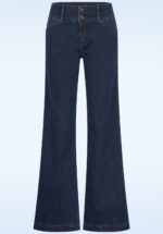 Deze 70s Legs Eleven Flared Trousers in Denim is zó comfy, je wilt haar iedere dag wel dragen! Geen wonder dat de flared broeken een grote trend waren in de seventies en nu een fantastische comeback hebben gemaakt! De wijd uitlopende pijpen zijn niet alleen speels maar ook nog eens super flatterend. Uitgevoerd in een stevige doch stretchy denimblauwe katoenmix voor een heerlijk draagcomfort. How I like my trousers? Comfy, fabulous and… flared! * Wijd uitlopende pijpen * Klepzakje voorzijde * Opgenaaide zakken achterzijde * Rits- en knoopsluiting voorzijde * Onze gorgeous blondine Melissa is 1,78 m