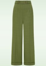 “Timeless, tailored, totally you.” Deze elegante pantalon heeft een vrouwelijke high-waist pasvorm met een decoratief riemdetail en knopen die je taille prachtig accentueren. De zijwaartse steekzakken geven haar een nonchalante, maar stijlvolle touch, terwijl de wijde, rechte pijpen zorgen voor een modern en flatterend silhouet. Ze is uitgevoerd in een soepelvallende stofmix met een vleugje viscose in groen met een subtiele donkerbruine ruitprint — klassiek met een moderne twist. * Hoge taille * Decoratief riem detail met knopen * Zijwaartse steekzakken * Rits- en haaksluiting achterzijde * Wijde, rechte pijpen met vaste omslagjes