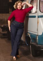 Geïnspireerd op de pantalons die de vooruitstrevende dames in de jaren 40-50 droegen! De vrouwelijke hoge taille vormt een mooi contrast met de wijde pijp en heeft een super afkledend effect, ook als je vollere heupen/billen hebt. De ”faux” anker knoopjes geven het geheel een sailor touch en maken het helemaal af. Uitgevoerd in een soepel vallend, licht stretchy stofje in een donkerblauwe kleur voor een heerlijke pasvorm. We like sailors but LOVE the sailor style! * Wijde pijpen * ”Faux” knopen voor- en achterzijde * Zijwaartse steekzakjes * Blinde rits en haaksluiting zijkant * Gemakkelijk in te korten * Vanessa Frankenstein is 1,67 m