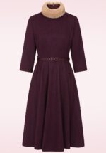 Deze D’Laine jurk is een vintage droom die uitkomt! Supervrouwelijk en elegant dankzij het kraagje, de reeks knopen en 3/4-mouwen. Vanaf de taille loopt ze uit in een zwierige, volle swingrok die een prachtig vrouwelijk silhouet creëert. Uitgevoerd in een stevige maar soepel vallende stofmix met een vleugje viscose, in een rijke bordeauxrode kleur met een fijne stretch voor heerlijk draagcomfort. Dromen zijn niet altijd bedrog! 😉 * Full swing model * V-halslijn * Afgeronde kraag * Reeks knopen * 3/4 mouwen * Kan gecombineerd worden met een van onze petticoats * Valt bij een lengte van 1,70 m over de knie