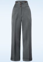 De 50s Girl Boss Trousers in Grey is geïnspireerd op de pantalons die de vooruitstrevende dames in de jaren 40-50 droegen! De vrouwelijke hoge taille vormt een mooi contrast met de wijde pijp en heeft een super afkledend effect, juist als je vollere heupen/billen hebt. De knoopdetails zorgen ervoor dat jij deze beauty met bretels kunt combineren en geven het geheel een speelse touch. Uitgevoerd in een soepel vallend, grijs stofje met een hele lichte stretch en afgewerkt met een chique omslagje bij de pijpen. Combineer met een witte blouse en pumps voor de perfecte zakelijke look in retro stijl! * High waist * Kan gecombineerd worden met bretels * Zijwaartse steekzakken * ‘Faux’ paspelzakken achterzijde * Rits- en knoopsluiting voorzijde * Wijde pijpen met omslagjes * Gemakkelijk in te korten