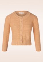De combinatiemogelijkheden zijn eindeloos met deze 50s Jennie Cardigan in Tan… Online in Nederland, Duitsland en Frankrijk exclusief verkrijgbaar bij TopVintage! Vestjes zijn vaak ondergewaardeerde kledingstukken maar laten we daar eens verandering in brengen. Je draagt ze open of gesloten en zorgen ervoor dat je de rest van je garderobe ook tijdens koudere dagen kunt dragen, daar verdienen ze toch wel wat credits voor?! Deze veelzijdige topper heeft een klassieke snit met een ronde halslijn, 3/4 mouwen en stretchy ribboord voor een mooie pasvorm. Uitgevoerd in een dikkere maar heerlijke soepele en stretchy, fijngebreide katoen in een nude kleur met een subtiel patroon. Jennie verdient echt een plaatsje in jouw kledingkast, toch? * Ronde halslijn * 3/4 mouwen * Stretchy ribboord * Iets korter waardoor perfect met high waist items