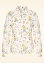 Beleef je eigen ‘summer romance’ met deze beauty! Ze heeft een puntig kraagje, lange pofmouwen en is uitgevoerd in een luchtige, gebroken witte katoen (stretcht niet!) met een romantische bloemenprint in pasteltinten en een bolletjes structuur. Love it! * Licht getailleerd * Lange pofmouwen met manchet * Knopenrij * Lang genoeg om op een normale heupbroek te dragen