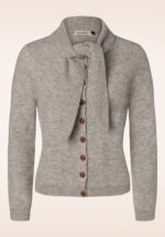 ”Bundled up and cute!” Deze cozy cardigan heeft een speelse omslagkraag met vaste strikbanden en een retro houten knopenreeks. Ze is uitgevoerd in een zachte en fijn gebreide biscuit gekleurde stofmix voorzien van een vleugje wol, die je heerlijk warm houdt tijdens de frissere dagen. * Omslag kraag met vaste strikbanden * Houten knopenrij * Lang genoeg om op een normale heupbroek te dragen