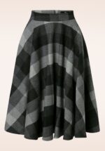 Swing your way into winter met deze Sophie wollen geruite rok in grijs! Dit fourties pareltje draag je hoog in de taille, vanwaar zij uitloopt in een klassieke, elegante swing rok. Ze is uitgevoerd in een geweven, dikkere maar soepel vallende wolmix (stretcht niet!) met een classy ruitje in verschillende grijstinten. Tevens is ze volledig gevoerd waardoor zij heerlijk draagt. De winterperiode kan zo mooi zijn, zeker met een rok als Sophie in je kast! 😉 * Swing rok * Volledig gevoerd * Zijwaartse steekzakken * Rits- en knoopsluiting achterzijde * Valt over de knie bij een lengte van 1,70 m