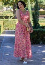 “Grace, glamour, and a touch of romance.” Deze luchtige maxi beauty, Shayna Jovial, komt uit de ‘Legendary Liz’ collectie. Dit seizoen brengt het merk een sprankelende ode aan niemand minder dan stijlicoon Elizabeth Taylor, een tijdloze diva die generaties blijft betoveren. Ze heeft verstelbare schouderbandjes, een bijpassende ceintuur die de taille accentueert, praktische zijzakken voor extra comfort en loopt uit in een flowy maxirok. Ze is uitgevoerd in een lichte, soepelvallende viscose (zonder stretch), voorzien van een romantische bloemenprint * Maxi jurk * Verstelbare schouderbandjes * Knopenreeks voorzijde * Afneembare riem, voor een extra ‘snatched’ taille * Voorzien van zakken! * Valt bij een lengte van 1,70 m op de enkel